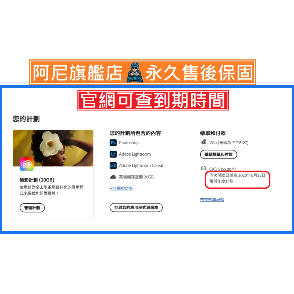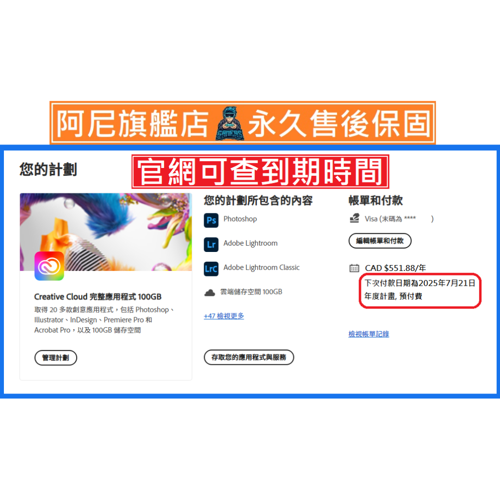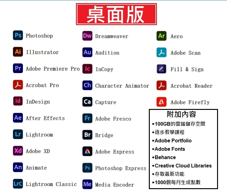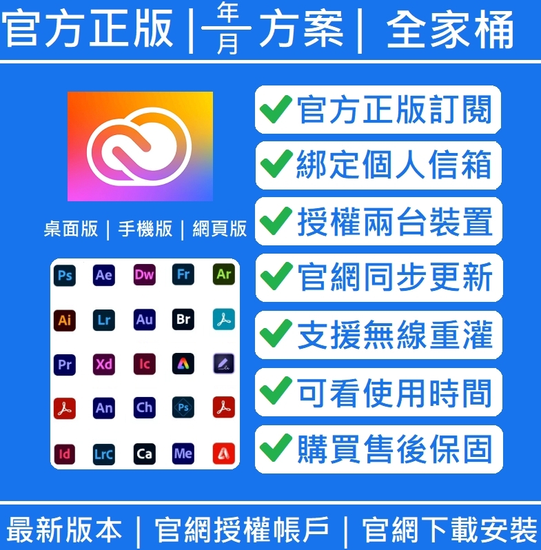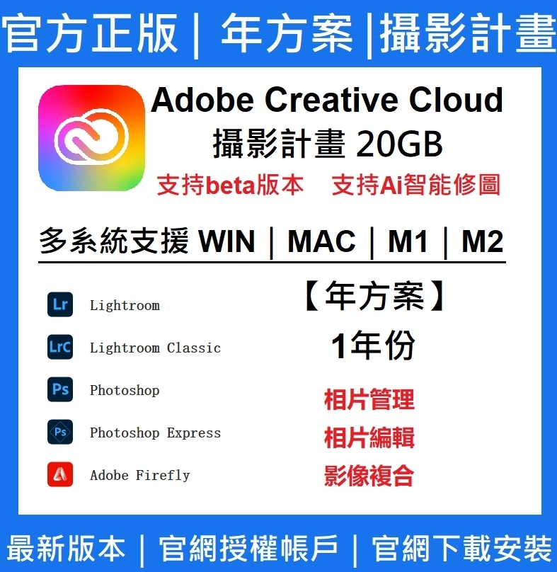 正版 Adobe Creative Cloud 授權完整應用程式100GB / 攝影計畫20GB photoshop