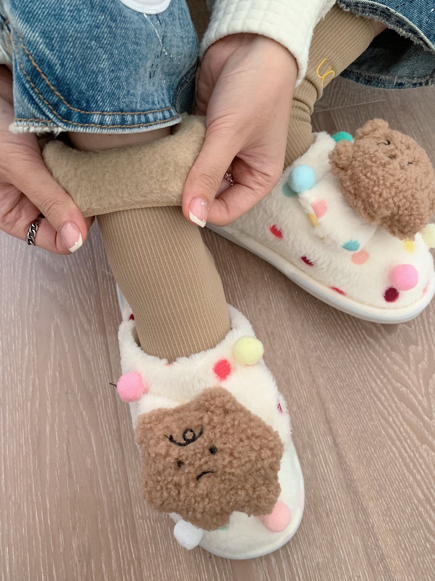 The outer layer is soft cotton for breathable comfort, while the inner lining is warm cashmere that feels unbelievably plush—like wrapping your feet in a cloud ☁️