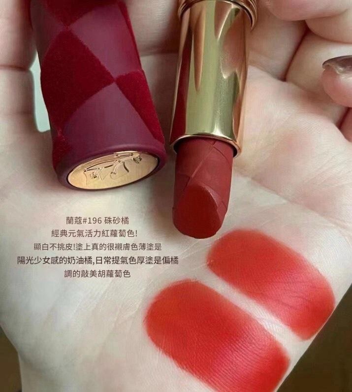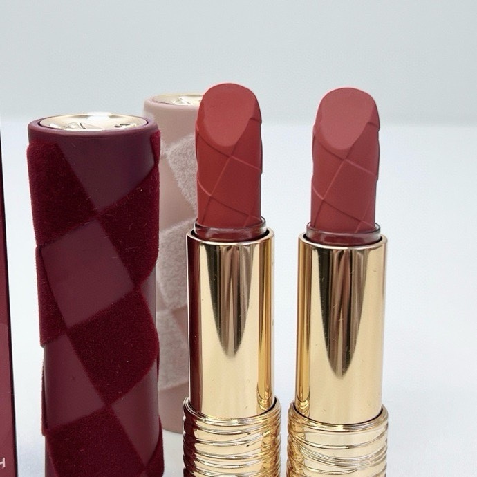 Lancôme 絕對完美柔霧唇膏限量版真係靚到令人一見心動,外殼設計已經充滿高級感,絲絨格紋包裝配金色唇膏管,拎上手精緻又有收藏價值。今次熱門色號好適合日常同約會妝感,柔霧質地上唇順滑,顯色度高,但唔會乾到繃緊,反而有種輕柔貼唇嘅高級霧感。#196 偏暖調橘紅豆沙感,提氣色之餘又夠時尚;#218 就係溫柔裸粉蜜桃調,斯文自然又顯白。無論薄塗定厚搽都好睇,輕鬆打造溫柔、知性或者法式氣質妝容,真係化妝袋入面好值得收藏嘅限量款。