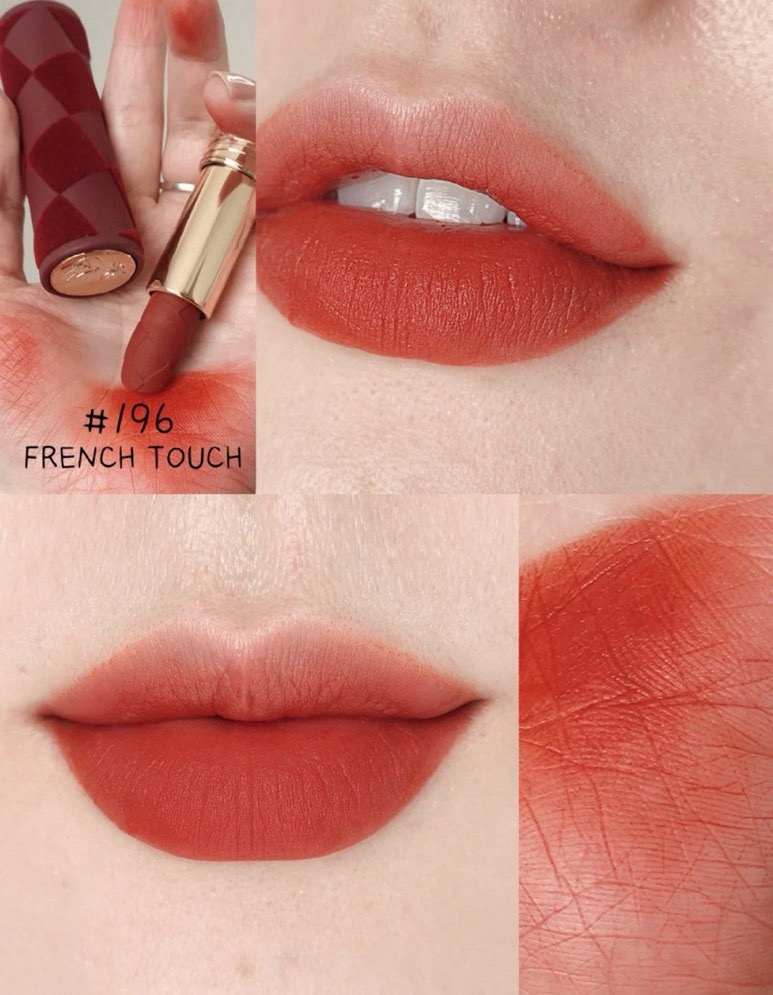 The Lancôme L’Absolu Rouge Intimatte limited edition lipstick is a beautiful statement piece with both luxury packaging and wearable everyday shades. The velvet-inspired limited casing paired with the gold tube gives it a refined, collectible feel that looks elegant the moment you hold it. Its soft matte formula glides on smoothly with rich color payoff while keeping the lips looking soft and comfortable, not overly dry. Shade #196 French Touch is a warm terracotta-orange rose tone that brightens the complexion with a chic touch, while #218 Petite Maille is a gentle nude pink-peach shade that feels soft, polished, and easy to wear. Whether applied lightly or built up, it creates a smooth, sophisticated lip look perfect for daily makeup or date-night glam.